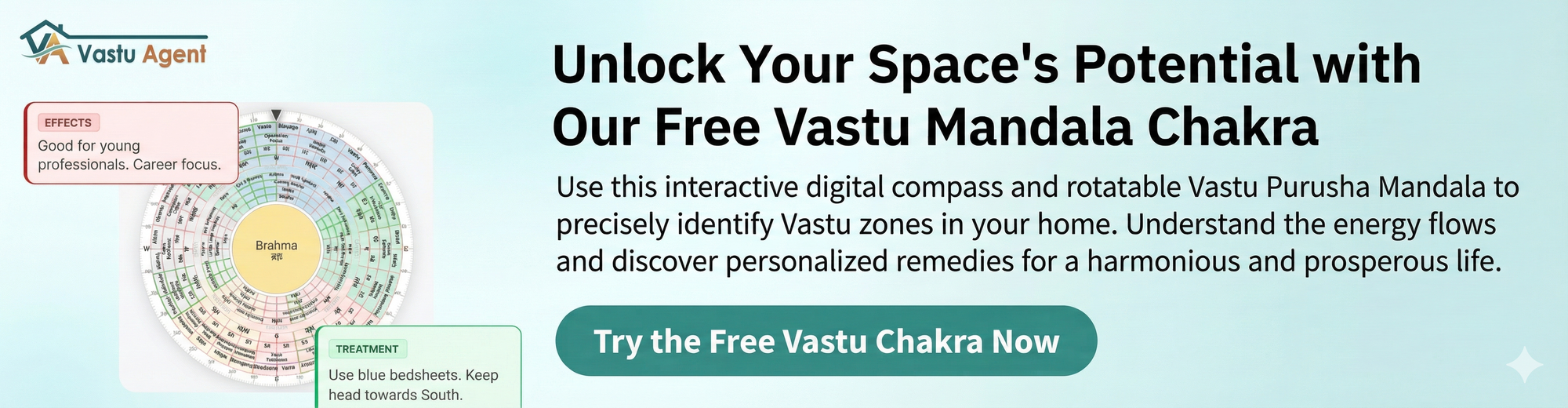 🧭 Not sure which direction your home faces? VastuAgent.ai's Vastu Chakra tool instantly identifies your home's orientation and maps all 16 zones—completely free.