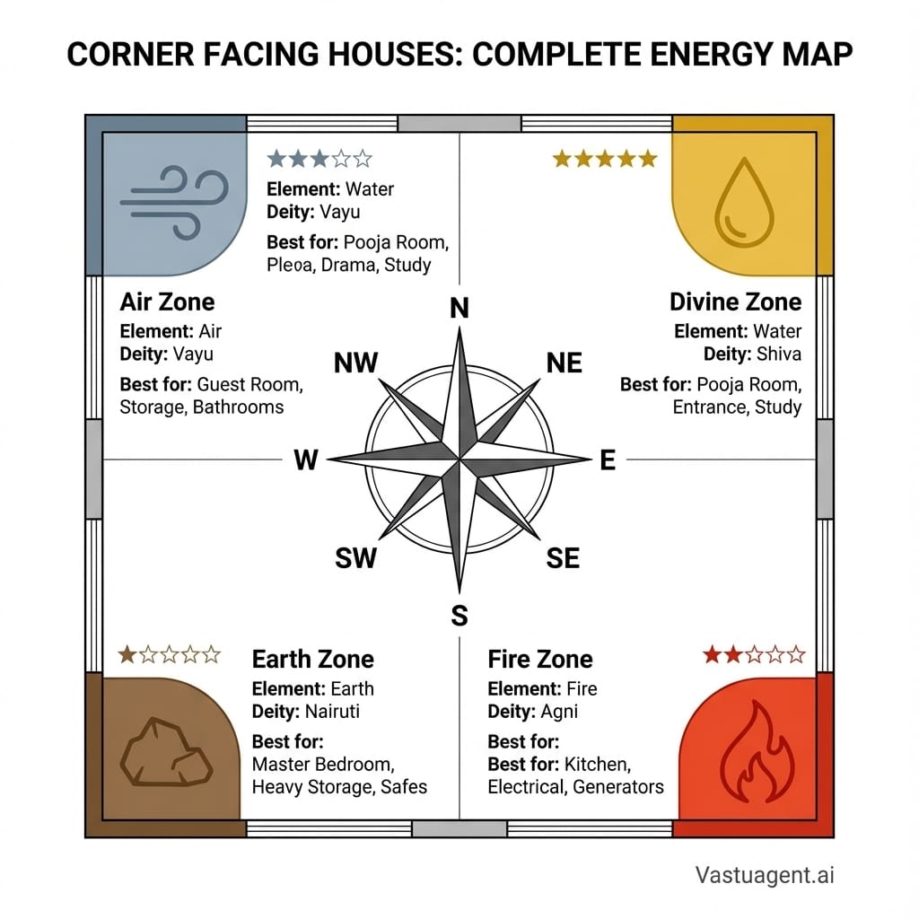 Each direction carries specific energy characteristics governed by particular deities. Understanding these helps you interpret what your house facing direction means.