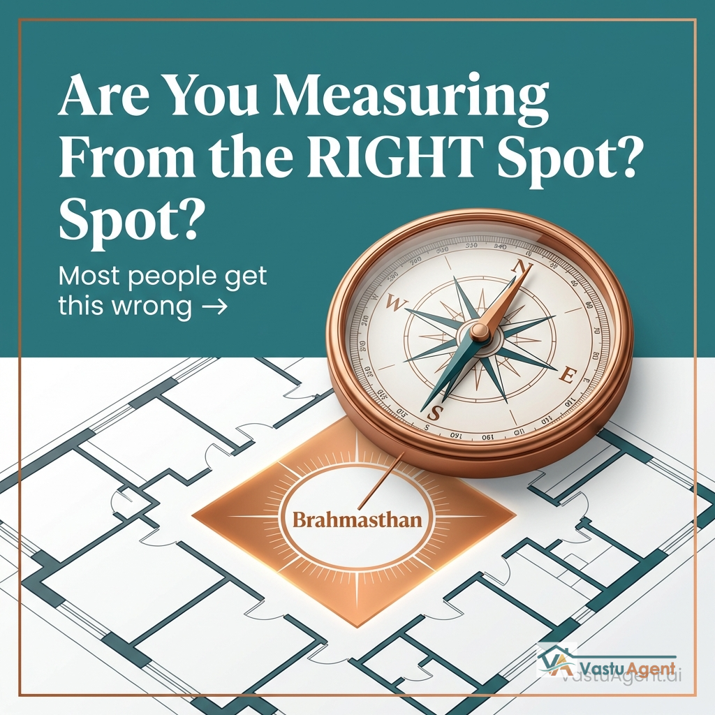Both measurements matter. The Brahmasthan method establishes your home's fundamental grid alignment, while the entrance method determines the quality and direction of energy flow into your living space.